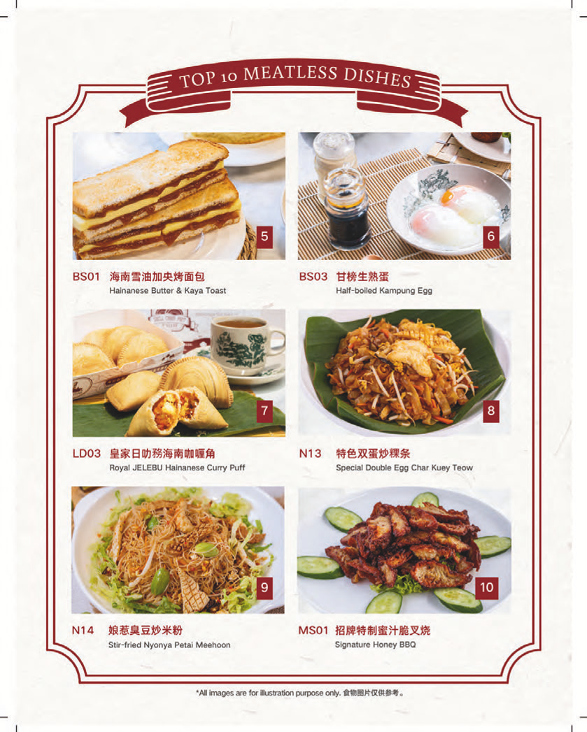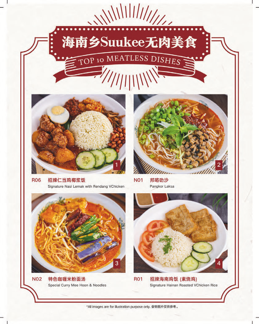 The solo meals stand out with comforting options such as Signature Char Siew Rice and Hainan Roasted and White Cut "Chicken" Rice, crafted with plant-based ingredients that mimic classic favorites perfectly. Pairing these with their hot Hainanese Cham or bold Hainanese Coffee adds an authentic kopitiam experience.